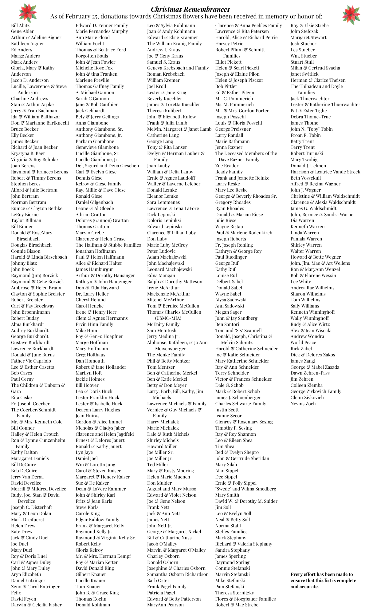 2025 Christmas Flowers Remembrances